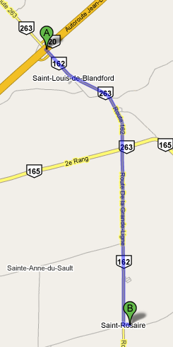 À 12 km (15 min.) de la sortie 235 de l'autoroute 20 direction route 162 Sud